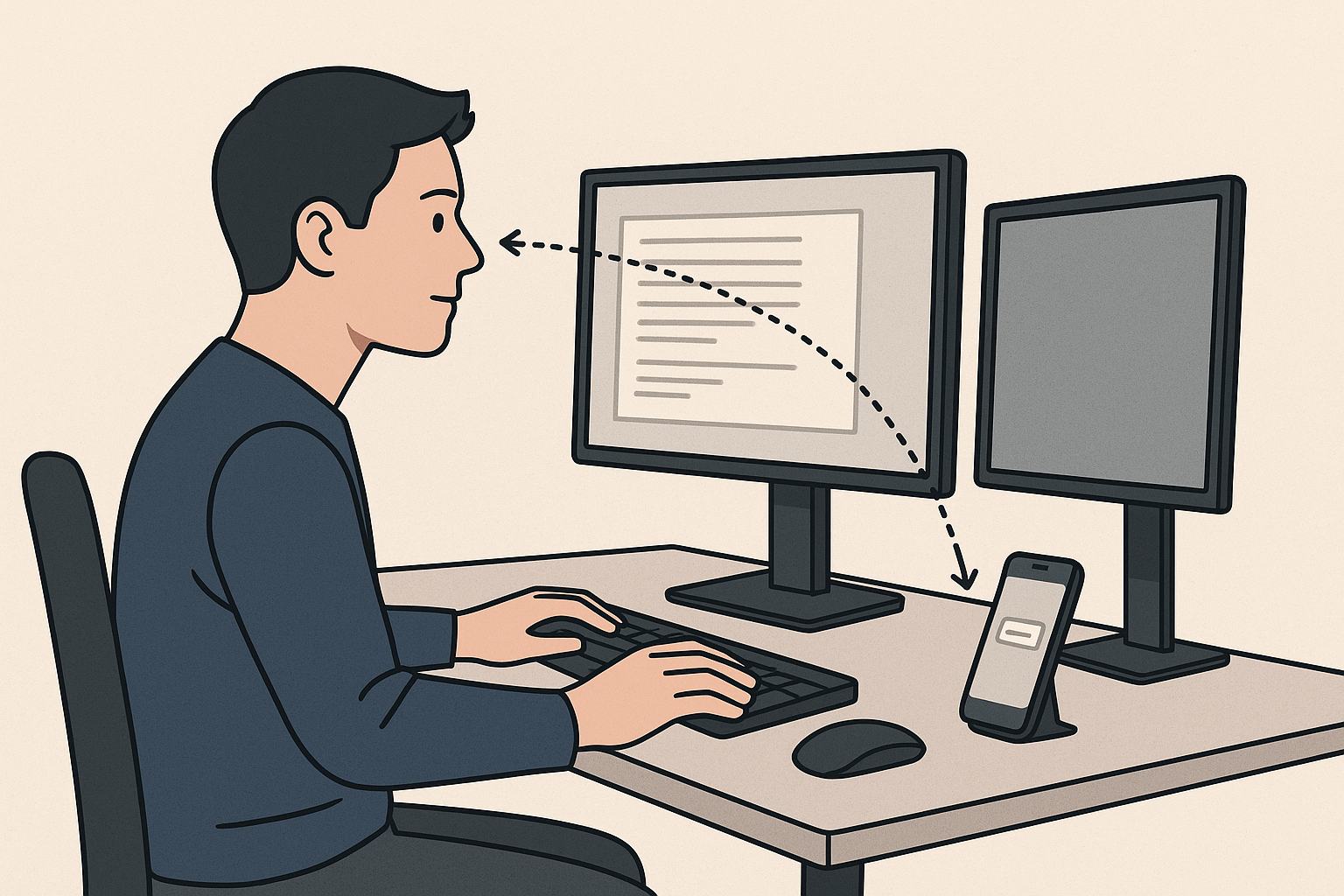 업무 효율을 무너뜨리는 요인은 ‘많은 창’이 아니라 흩어진 시선 동선입니다. 같은 정보라도 정면→좌측→우측→아래짧고 예측 가능한 경로에 배치하면 목 회전과 초점 재맞춤 시간을 크게 줄일 수 있습니다. 본 가이드는 듀얼/트리플, 랩톱+외부, 스마트폰·태블릿까지 포함해 시선 전환을 최소화하는 레이아웃·소프트웨어·알림 운영법을 제시합니다.