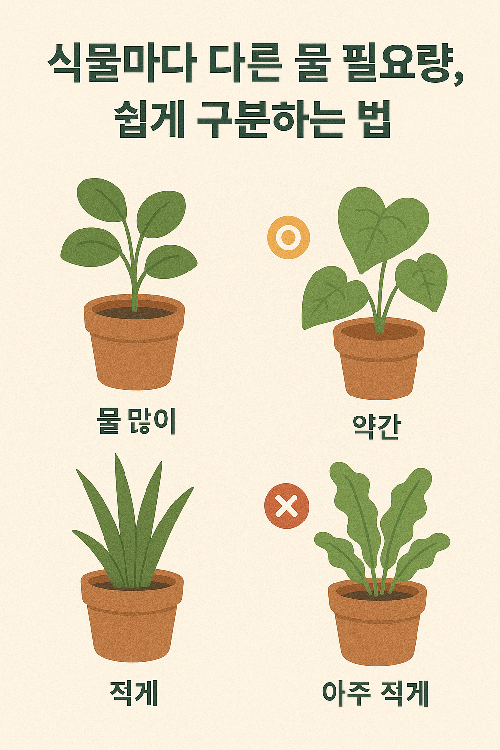 식물마다 물 필요량이 다른 이유는 잎의 두께, 뿌리 구조, 원산지, 계절 등 다양한 요소가 얽혀 있기 때문입니다. 하지만 초보자라면 모든 이론을 외울 필요 없이 ‘잎과 뿌리의 생김새, 흙 건조 상태, 식물이 보내는 신호’를 관찰하는 것만으로도 충분히 구분할 수 있습니다. 물을 어떻게 주느냐에 따라 같은 식물도 건강이 크게 달라지므로, 오늘부터는 무작정 주기보다 식물 맞춤형 물주기 습관을 시작해 보세요. 작은 차이가 큰 성공으로 이어집니다.